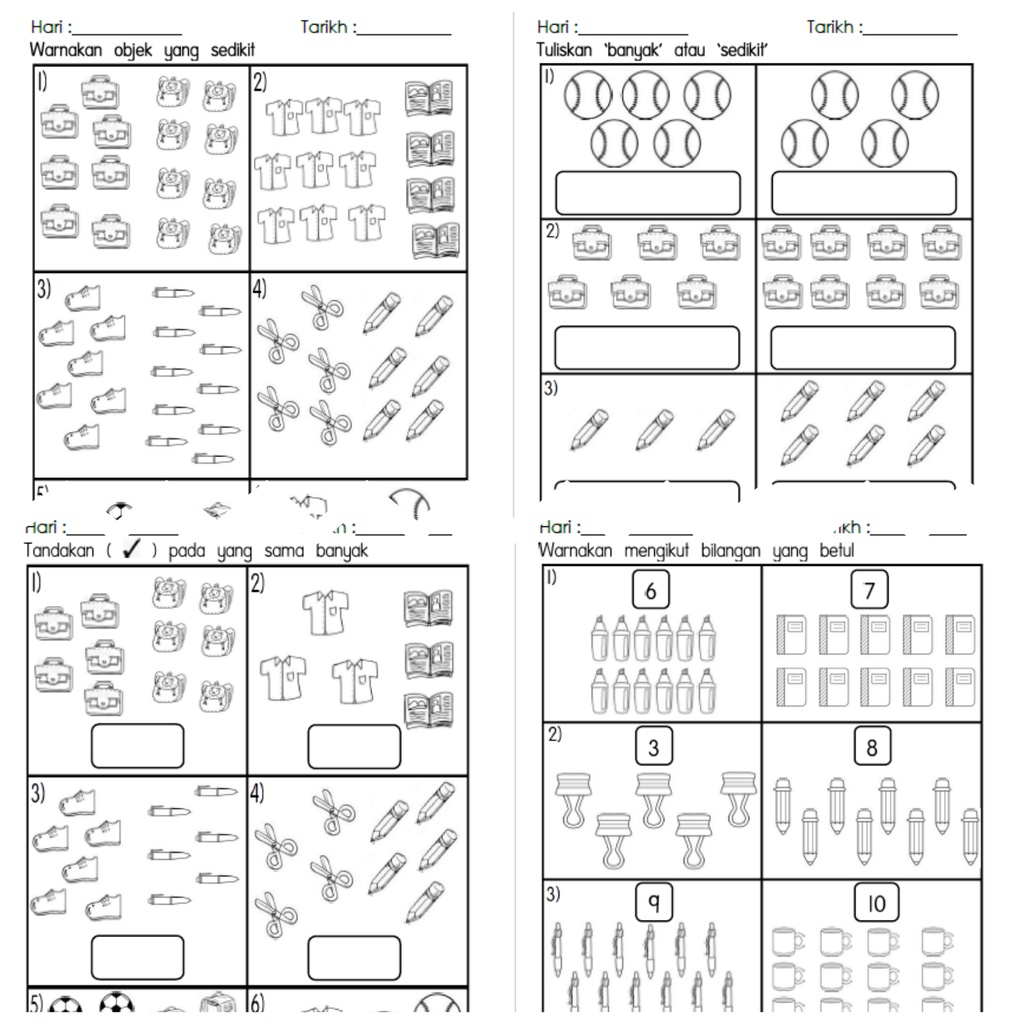 Pada kali ini kami ingin berkongsikan kepada anda semua latihan matematik prasekolah bagi 6 tahun yang cantik. Post this item on a website Home lembaran kerja matematik prasekolah operasi tambah dan tolak latihan operasi tambah 1 hingga 10 tahun 1 . 5 tahun (pra sekolah / tadika), 6 tahun (pra sekolah . Give this to others 2. Soalan matematik wang tahun 4 . Pendidikan khas tingkatan 1 by athirah270. Lembaran kerja operasi tolak oleh:koleksi bbm cikgu azlienda subjek:matematik tahun/tingkatan: Markah akan diberikan pada jawapan yang. Lembaran kerja matematik prasekolah operasi tambah dan tolak. Docplayerinfo soalan ujian latihan matematik tahun 1 pdf download. Copy this item for use by others 3.
